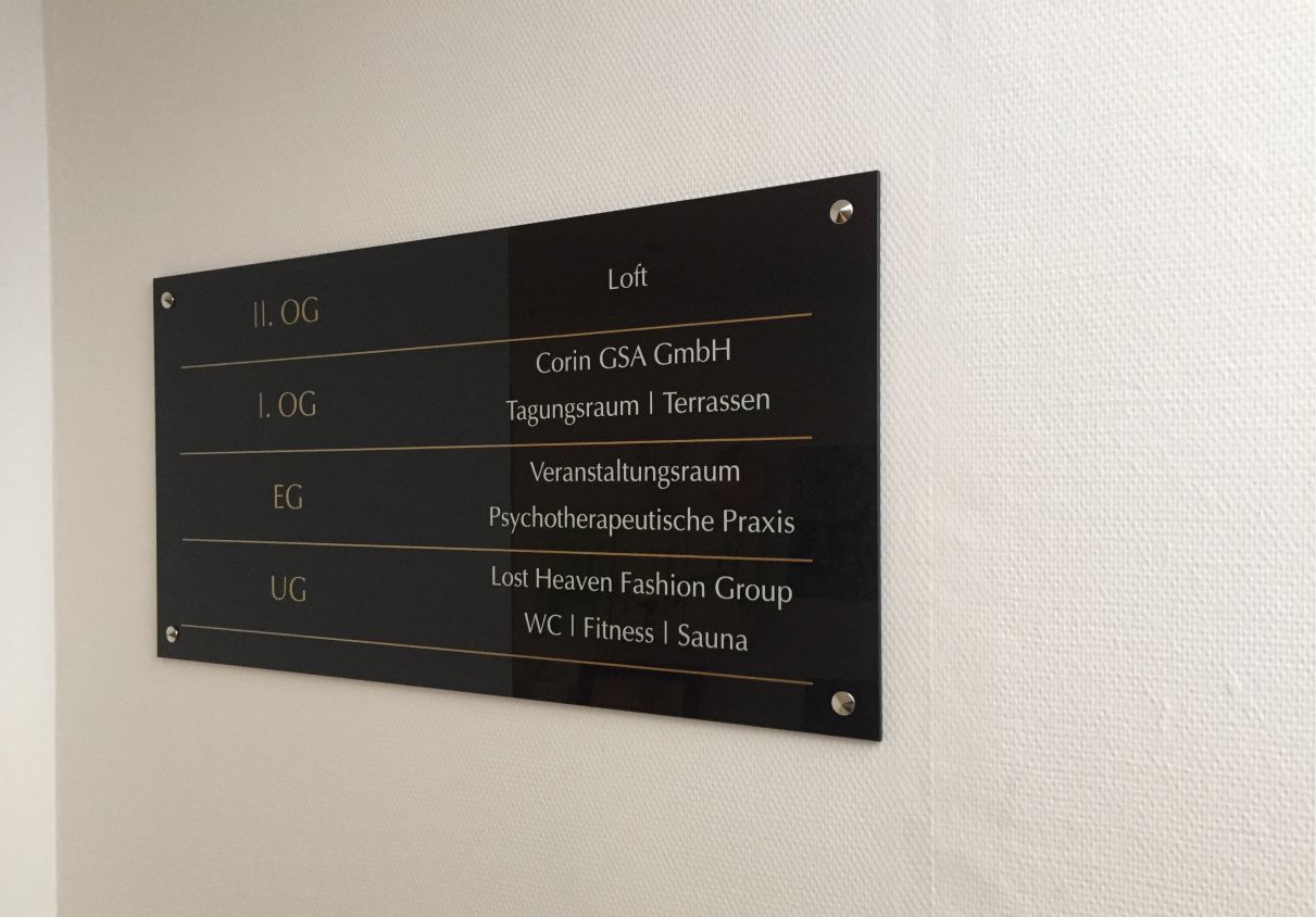 Im Bereich der Beschilderung nehmen Wir die Glasoptik als Oberfläche hochwertig und exclusiv wahr. Diese Oberfläche erzielen wir durch den Einsatz von Echtglas und Acrylglas.