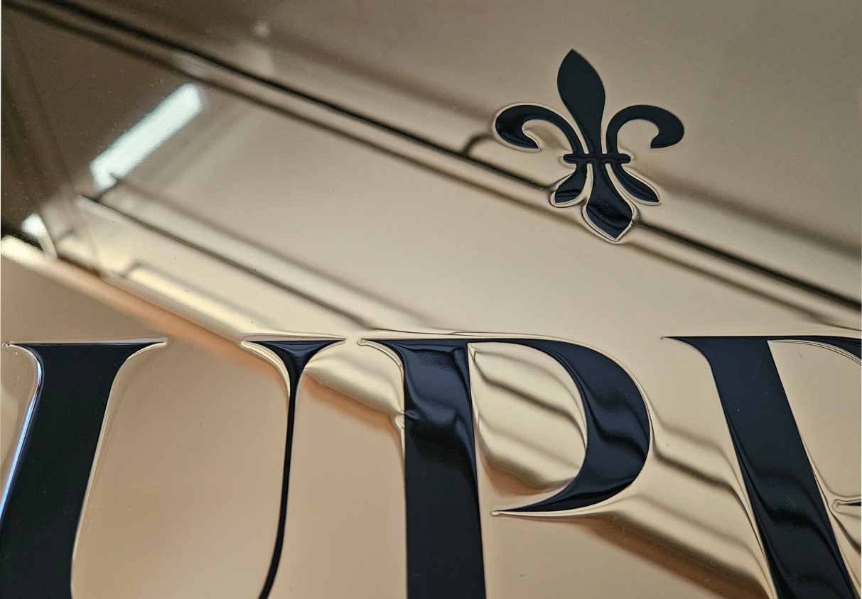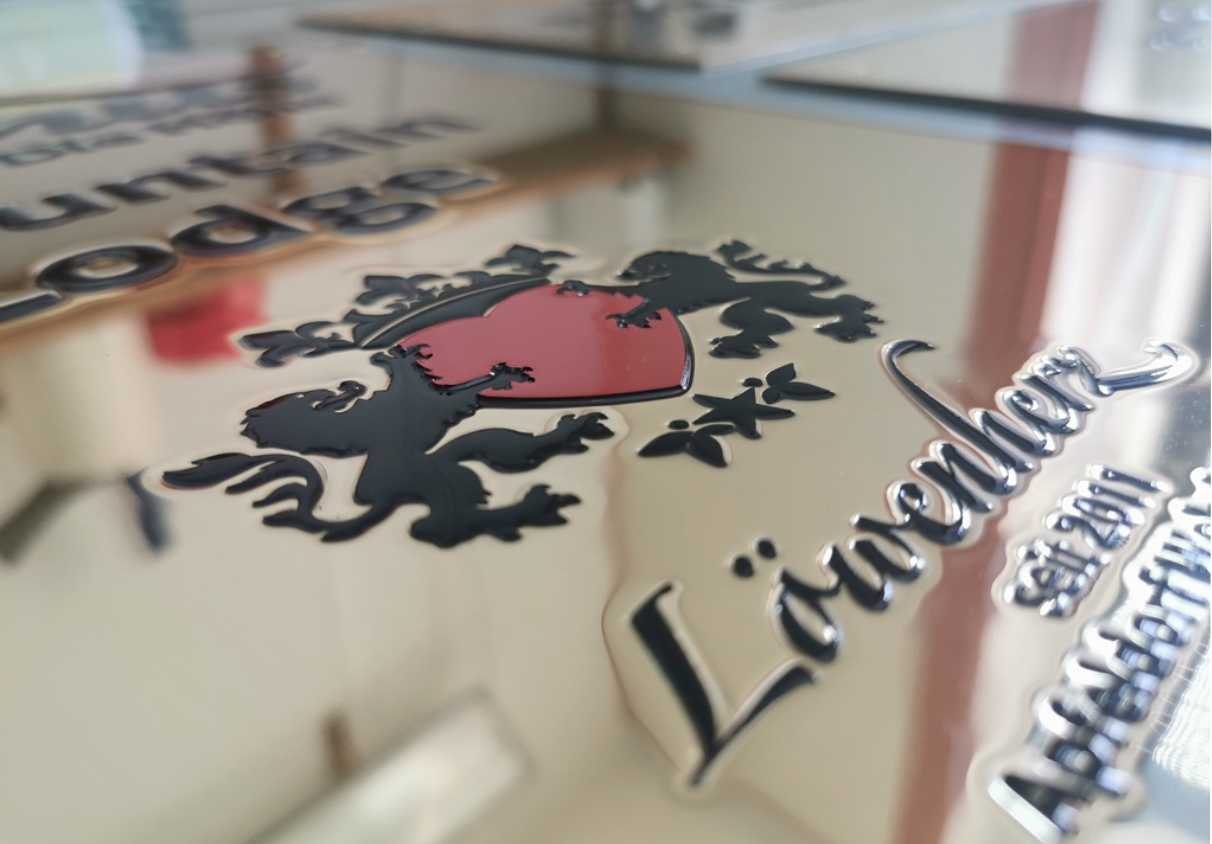 Aufgrund von Inhaltsvorgaben wie z.B. feine Linien oder sehr viel Text und Grafikelementen haben wir den Reliefdruck entwickelt, dieser kommt dem Wunsch nach einer haptischen Tiefe entgegen und enthält in vergleichbarer Weise die Wertigkeit einer vertieften Gravur. Hiermit haben wir eine Lösung gefunden Inhalte darzustellen bei der wir mit der traditionellen Gravur an die Grenze kommen. In Verbindung mit unserer Oberflächenbeschichtung liefern wir hier ein Produkt das höchsten Ansprüchen genügt.