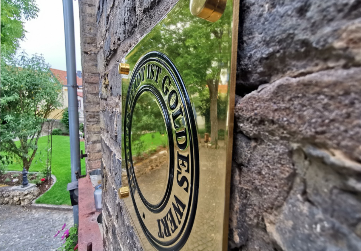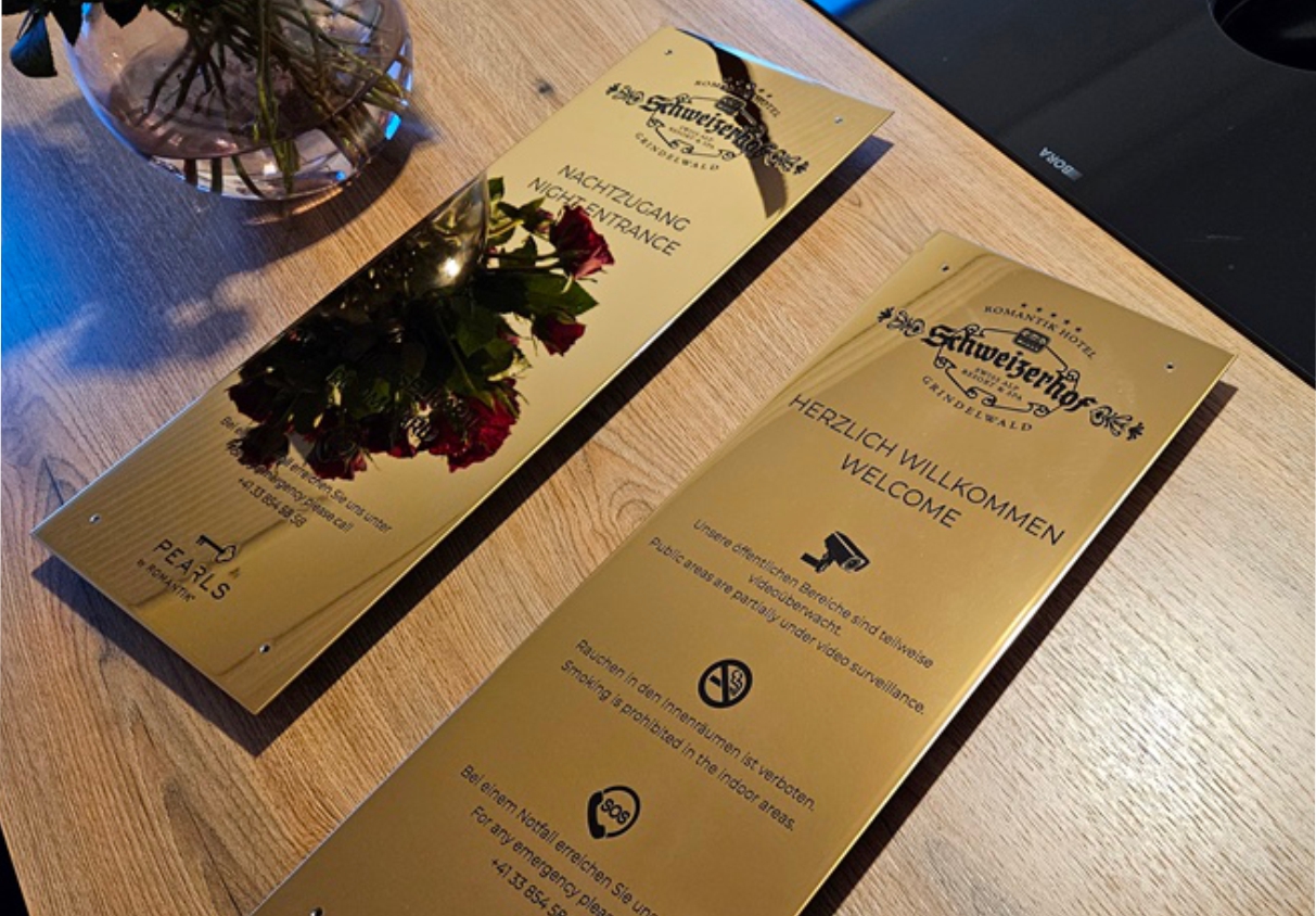Es ist nicht alles Gold was glänzt, der Glanzgrad von poliertem Messing kommt dem aber schon ganz nah. Große Polierte Messingschilder a la Grand Hotel haben in der Schilderproduktion wie im Erscheinungsbild eine ganz besondere Stellung. Wir erklären die Besonderheiten und produzieren und liefern Messingschilder (Edelstahlschilder) mit Reliefdruck oder in gravierter Ausführung.