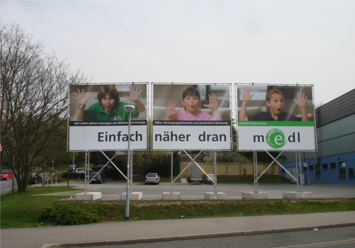 Die Standsicherheit wird gewährleistet entweder durch den Erdeinbau bei Holzkonstruktionen und der Herstellung eines gegossenen Betonfundamentes oder bei der Verwendung von Aluminiumkonstruktionen eingesetzten mobilen Betonfundamenten die durch das Montageteam mittels eigenen LKW-Kranwagen bestückt wird, die Standfläche muss durch den Auftraggeber eben, tragfähig und anfahrbar vorbereitet werden. Gekaufte Systeme werden nach gewünschter Schildergröße statisch berechnet und mit verzinkten Wannen ausgeliefert die vor Ort mit handelsüblichen Betonscheiben (50x50 cm) bestückt werden um eine Standsicherheit zu garantieren